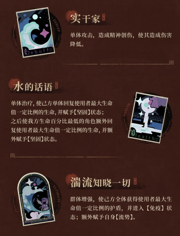 重返未来1999小叶尼塞怎么样?该治疗技能的优势在于,如果单个己方单位残血,能瞬间抬高其血线,两个己方血量较低时,也能有接近群体治疗的作用。与群体治疗技能各有优劣,湍流知晓一切是一个群体增强仪式,是目前少有的能为己方提供群体护盾和免疫的技能,从技能组可以看出,小叶尼塞的每
