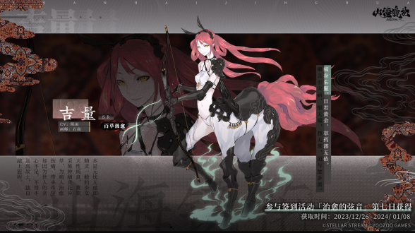 山海镜花吉量技能是什么?吉量是山海镜花2023年12月底上线的全新SR角色,可以在2023年12月26日 10:00 - 2024年01月08日23:59期间获取,你还愿意救治他吗,我不知道,巫彭大人……你说我该怎么办才好,救或者不救,我不能替你回答。只是你只需要问问自己的心,就知道你真正想做的是什么了,我只是想要