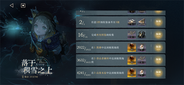 重返未来1999落于积雪之上怎么过?该活动是一个登山小游戏,过程中每前进一次都会消耗行动力,并出现不同的事件,每个事件都会有多个选项供我们选择,选择后会产生不同的效果,我们的目标就是减少行动力的消耗,到达极限海拔,这里的事件只有在选择过一次之后才会看得到效果,未选择过的是