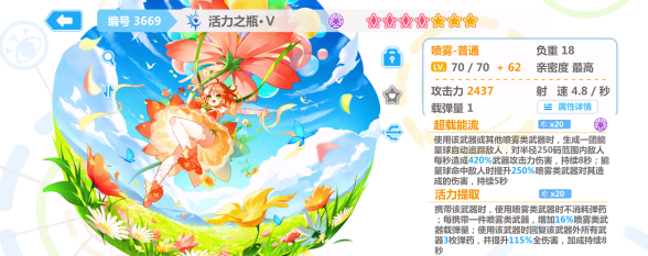 崩坏学园2活力之瓶怎么搭配?改版以后当主c肯定是没问题的啦,但是因为到正式服的削弱,当完完全全的辅助肯定是不行的啦,但有的时候有些图可能需要其他的喷雾补伤害或者补充其他属性的时候,那么空想喷雾自带的使用其他武器生成能量球就会有额外的出场机会,不是说空想喷雾自身作为辅c有