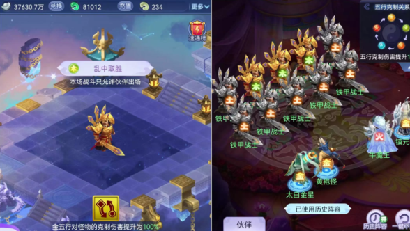 梦幻西游网页版五行斗法2023年12月19日土擂台怎么过?击败水魔将即可通关,利用攻击最低气血目标的伙伴,法术的伤害结果会被降低,优先上物理土系伙伴,第一种阵容推荐武罗、九头虫、王母、执音,第二种阵容推荐武罗 九头虫、哮天犬、地涌、北海龙女,五色石推荐雷闪,其他几个擂台的打法也