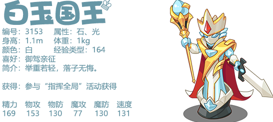 洛克王国白玉国王怎么配招?威重令行主动使用时将已有的天气环境清除锁定,而回合内的天气环境则会提供精力回复。予夺生杀在场上回合与己方阵亡较多时威胁较大,后期出征更有优势。玉烛调和则是会与后续的翡翠皇后共享的技能,对白玉国王来说在提供续航的基础上会获得输出加成。机制上更