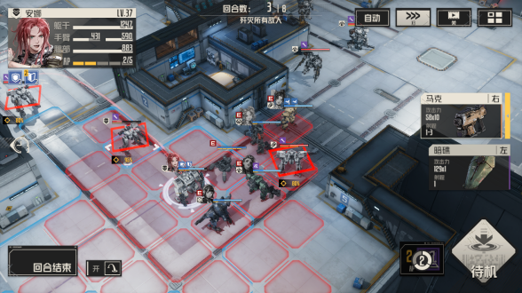 钢岚战术模拟第三章第四关怎么过?战术模拟第三章第四关的战场BUFF是回避下1次攻击,每回合触发一次,敌方生效,这关难就难在本关敌方每回合能回避一次攻击,对我方攻击造成阻碍,因为有buff的存在,所以本关节奏不会很快,在攻击前,需要先让其他人伤害较低的进行攻击,将敌人回避状态破除