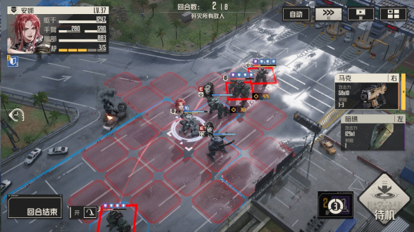 钢岚战术模拟第三章第一关怎么过?战术模拟第三章第一关的战场BUFF是发起攻击时,目标离自身每远一格,造成伤害降低百分之二十,最多百分之八十,我方生效,这关难就难在本关BUFF使得我方在使用远距离攻击时,对敌方造成的伤害大大降低,不利于我方远程输出,这里推荐尽可能减少远程攻击,