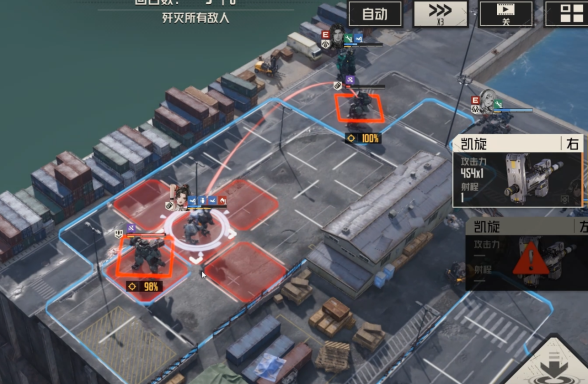 钢岚战术模拟第四章第五关怎么过?战术模拟第四章第五关的战场BUFF是自身耐久值全满时,造成伤害提升百分之百,无法驱散,敌方生效,这关难就难在本关BUFF较为棘手,在未受到伤害前,敌方对我方造成的伤害翻倍,而且本关的地形对于敌方非常有利,这里推荐因为增伤BUFF是在敌方耐久全满时生效