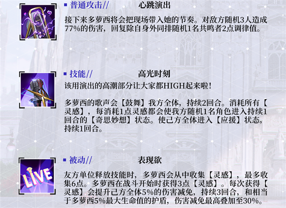 绯色回响多萝西技能是什么?哎呀哎呀,难道你这个成熟的大人需要我这样的小孩子来帮你吗?真没办法呢,多萝西是教国最近突然名声鹊起的新人偶像,她以12岁的低龄取得了不俗的商业成绩,她在演出时以“甜美的笑容,天真可爱”为特色卖点受到了大众的喜爱,在私下,她会更显露身为小孩子的