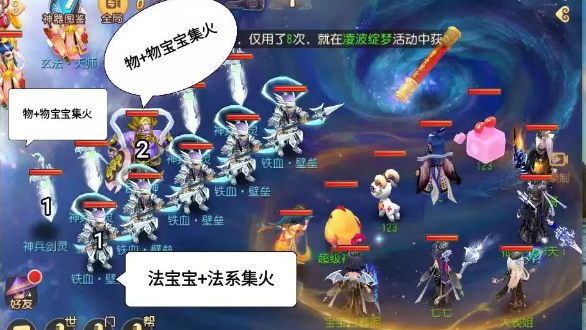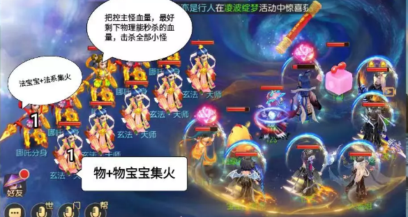 梦幻西游手游如意金箍棒哪吒怎么打?哪吒一共有圈定乾坤和因果有报两个技能,这关敌方阵容都是哪吒分身和玄法天师,哪吒分身一共有四个,玄法天师则是前排的五位,全法系输出,开局先罗汉,后排哪吒群攻带封印,辅助可以选择微风或者纸人抗伤害,物理群攻前排玄法,法系和法宝宝法攻后排