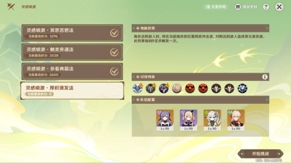 原神灵感喷激厚积薄发法怎么过?厚积薄发法是灵感喷激的最后一个阶段了,也是游水酝诗籍活动的最后一天,厚积薄发法的BUFF,适合草元素反应队伍,根据怪物的盾,更适合燃烧或烈绽放队伍,当然其它任意队伍皆可,带个与草元素反应元素,例如火、水、雷都可以,萌新的话推荐平民战神香菱,值