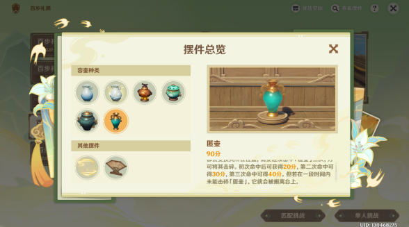 原神百步礼掷之四怎么过?百步礼掷第四阶段的新道具是匿壶,匿壶的作用是在一段时间后,会在某个地点出现,由于是是主办方设置的特殊容壶,当匿壶每次被击中时,匿壶都会变换其所在位置需要连续击中匿壶三次,方可将其击碎,初次命中后可获得二十分,第二次命中可得三十分,第三次命中可