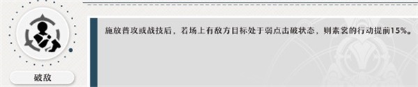 崩坏星穹铁道素裳额外能力破敌有什么特点?素裳拥有一个名为「破敌」的额外能力,这个能力允许她在场上有敌人处于弱点击破状态时,施放“普通攻击”和“战技”后提前行动(即进行拉条操作)。这个能力的具体效果是:如果敌人处于弱点击破状态,素裳在施放普通攻击和战技后可以立即提前行