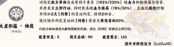崩坏星穹铁道素裳终结技有什么机制?素裳的终结技额外增加了两次【剑势】,其持续回合数会在战斗界面的素裳头像下方显示。这两次增加的【剑势】伤害为原战技【剑势】伤害的50%,因此,提升战技等级将使终结技增加的两次【剑势】伤害也得到相应提升。在终结技使用后再使用战技,面对处于弱