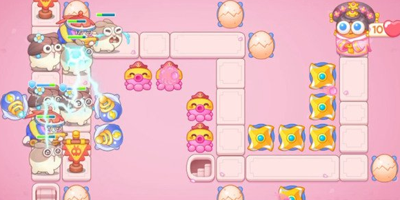 保卫萝卜4秋妃传第二关怎么过?秋妃传第二关的的道路比较像环环相扣,左下右上各一个环,地图中有两座轿子、一个枇杷、这里多了三盒胭脂和两个正方形的水潭,左右边缘都是桃花树,上下有栏杆围着,兔子从左上角生成,妃子萝卜则在右上角的道路尽头,小编把秋妃传第二关的通关道具摆放图给