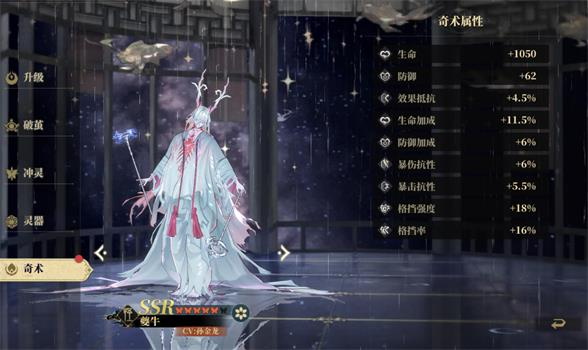 山海镜花夔牛奇术怎么提?夔牛自身防御属性也是比较高的,防御减伤比较高,再配合待机效果直接伤害-15,夔牛的结界虽然是2回合,但是夔牛很怕控制技能打断雷鸣状态,尤其是前期在格挡率普遍不高的时期,需要利用待机弥补格挡率,就更容易被断,因此,如果词条中有抵抗,也属于有效属性,关