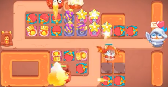 保卫萝卜4饿龙传说第四十八关怎么过?饿龙传说第四十八关中间有一条主干道,上下各一个岔路,骑士萝卜在最右侧,乒乓球拍以及星星是这关的核心道具,除此之外还有烟花以及喷火瓶道具可以用,可以先用星星打怪的同时打障碍物,有钱之后再放置一些烟花,小编把饿龙传说第四十八关的通关道具