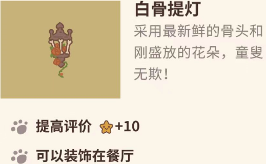 动物餐厅万圣节兑换码是什么?本次动物餐厅2023年万圣节兑换码给的是一个餐厅场景的墙面装饰,名叫白骨提灯,这是一个需要解密的兑换码哦,采用最新鲜的骨头和刚盛放的花朵,童叟无欺,需要小伙伴注意的是版本需要更新到9.27.2才可以兑换哦,这次的兑换时间持续的也很长,一直到2023年11月12日