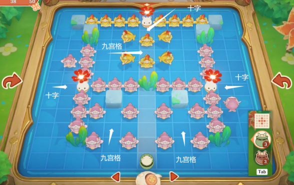 原神嘟嘟可轰轰奇遇记第五天怎么过?角角鱼的大王听说了嘟嘟可的事,气势汹汹地前来应战,看它圆鼓鼓的样子,肯定不好对付,嘟嘟可要仔细规划一番,怎么样把数量有限的特别蹦蹦派出去,才能彻底打败它,当蹦蹦提前来到了角角鱼们的营地附近,却被角角藏身水草给困住了,破坏那些角角藏身水