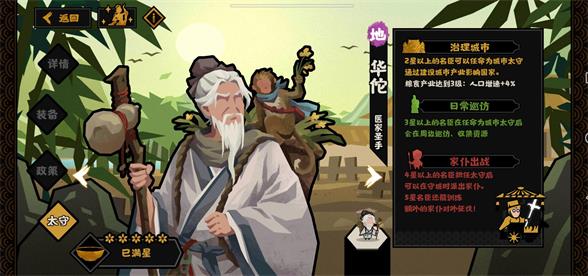 无悔华夏华佗技能是什么?华佗真的太强啦,解救我的残疾武将,甚至在某些老剧本,携带三国军事名臣后,如果武将中了负面特性,就感觉少了一个人,顺便华佗的小猴子也可爱捏,华佗一共有两个技能,分别是麻沸散和五禽戏,拥有和羲和一样的太守效果,家仆是济世医者,怎么说呢,有点像人型