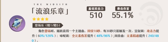 原神那维莱特武器用流浪乐章怎么样?尽管满精的流浪乐章的性能超越了一阶专武万世流通大典,我们并不主张优先考虑该选项,因为其存在一定的局限性。首先只有当摇出两个音符时,流浪乐章的增伤效果才会产生实际作用。对于那维莱特来说,每次摇出一个或三个音符时,流浪乐章的效果等同于一