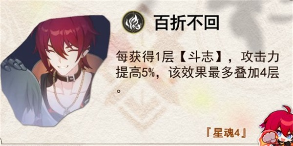 崩坏星穹铁道卢卡星魂4有什么作用?卢卡的星魂四——百折不回,赋予了他额外的攻击力加成。但需要注意的是,这一效果的启动需要依靠斗志层数的积累。在星魂二的协助下,我们只需通过两次战技或者一次战技和一次终结技的组合,便可以轻松叠满。一旦启动,效果就会持续生效。一般来说,我们
