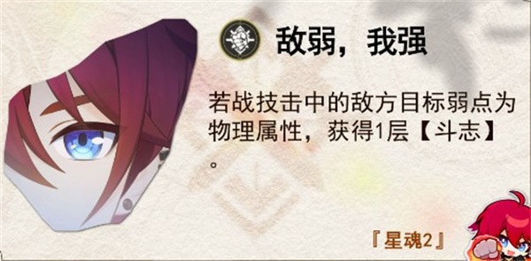 崩坏星穹铁道卢卡星魂2有什么作用?卢卡的星魂 "敌弱,我强 "不仅赋予了他独特的能力,还为他的战斗策略提供了新的视角。这个星魂以其独特的方式为卢卡开辟了新的斗志获取途径。每当你精准命中弱物理敌人,你便能额外获得一层斗志,让你的战斗潜力进一步激发。在弱物理环境中, "强化普攻 "
