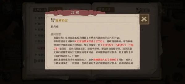 时间之钥贸易协定任务怎么做?贸易协定的前置任务是在极光湖底成功阻止了水精灵和娜迦族的战斗后开启,需要我们来到银浪潮之城找到大门左边的尤兰达(37.36),打听资源稀缺,帮她到祖螺洼地找娜迦族长寻求帮助,族长很痛快,到(153.132)(148.117)(134.73)取货后,回来找娜迦族长,受战争影响,娜迦族