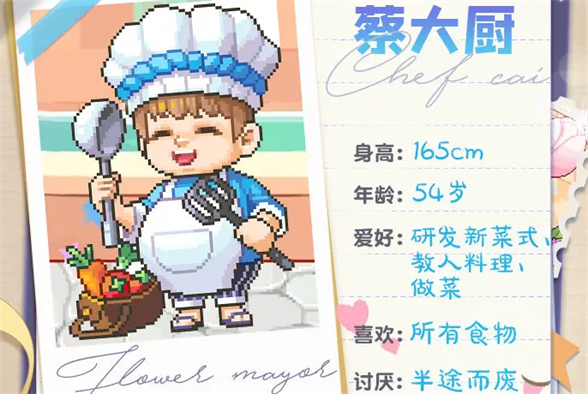 皮卡堂之梦想起源蔡大厨怎么样?蔡大厨是一名身高一米六五五十四岁的大厨,爱好研发新菜式、教人做料理和做菜,他喜欢所有食物,讨厌半途而废,皮卡小镇的大厨,平时乐观开朗和蔼可亲,但是一旦涉及厨艺就会变得非常严肃,非常热心肠,有人请教厨艺的时候都非常开心,会认真教学,关心大